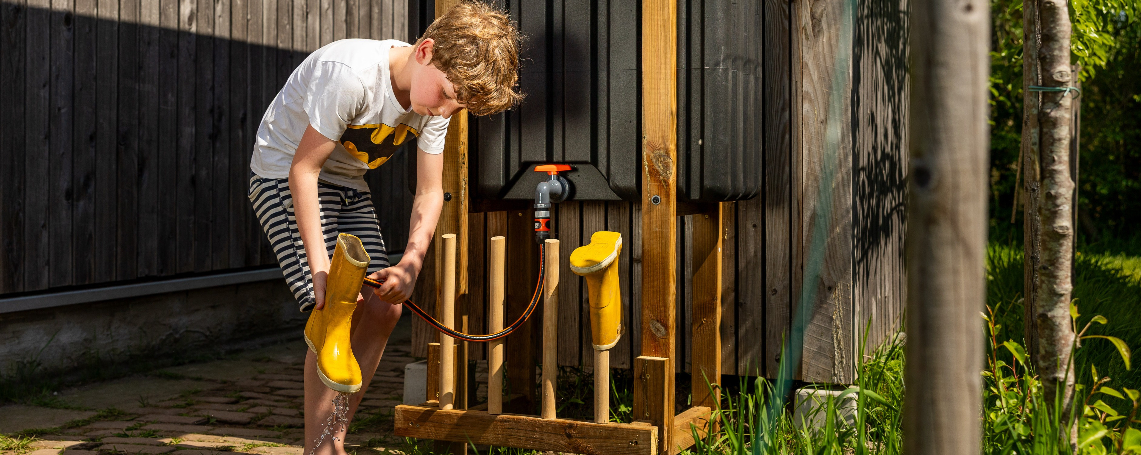 Zo gebruik je regenwater slim en stijlvol, precies zoals het past bij jouw tuin, terras of schoolplein.
