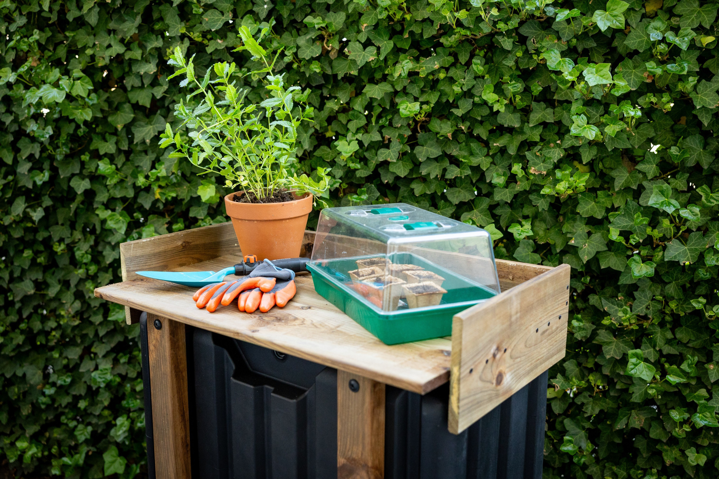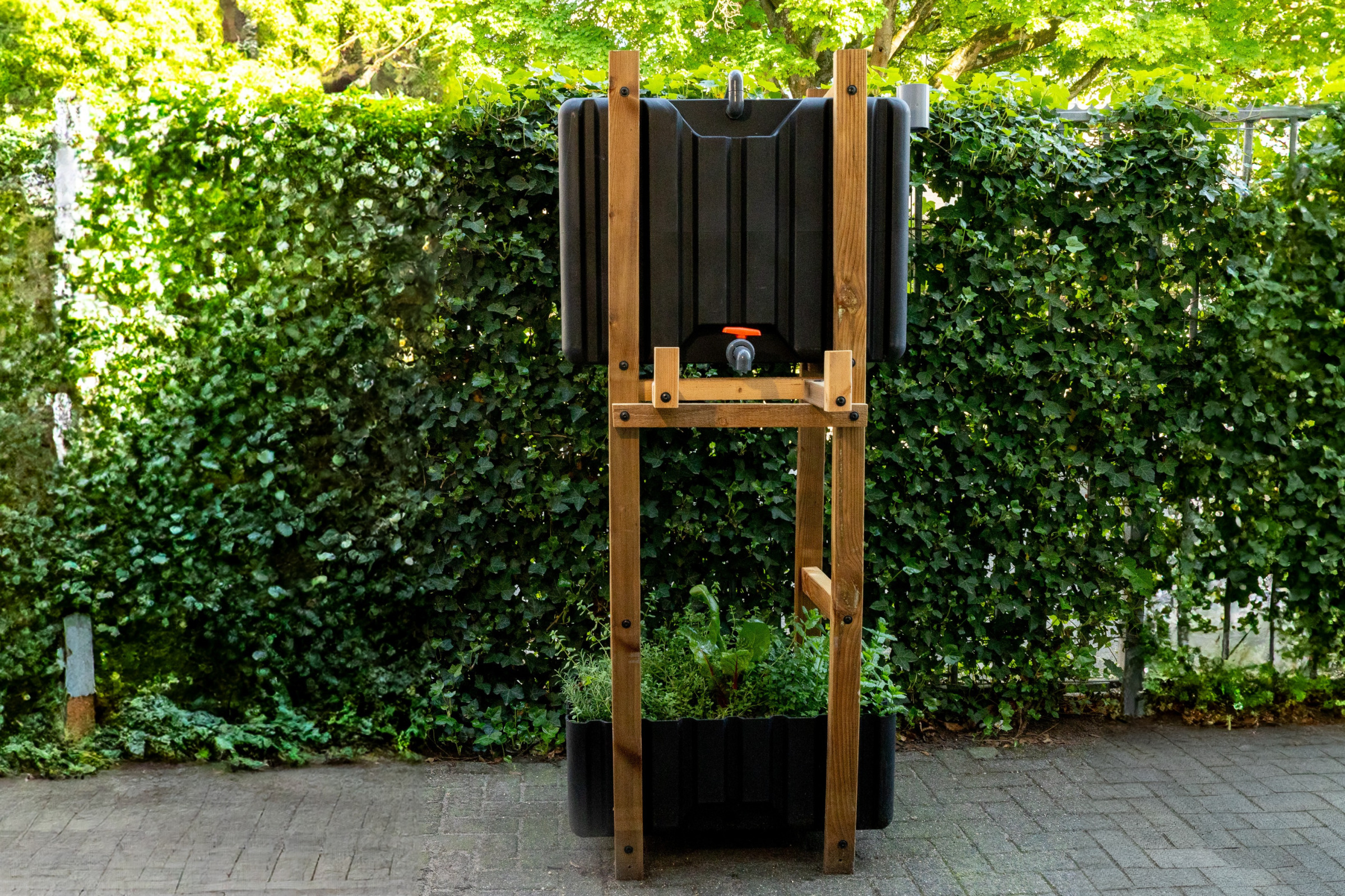 Een stoer buitenmeubel dat regenwater opvangt en ruimte biedt voor bloemen of kruiden. Pluk wat verse munt voor je thee, houd samen met gasten het groen mooi, of geef kleur aan het terrein.