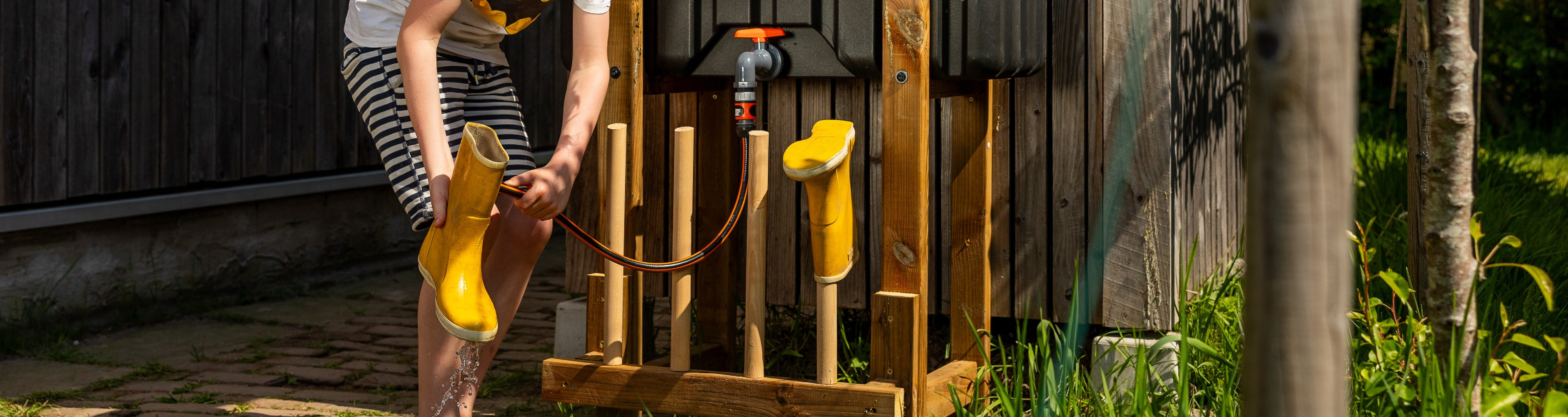 Onze watertoren is meer dan opslag het is een multifunctioneel buitenmeubel dat perfect past op campings en vakantieparken. Gasten gebruiken regenwater om hun laarzen schoon te maken, zandbakspullen af te spoelen of de mountainbike te reinigen.